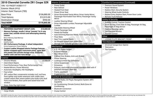 2010 Chevrolet Corvette ZR1 w/3ZR