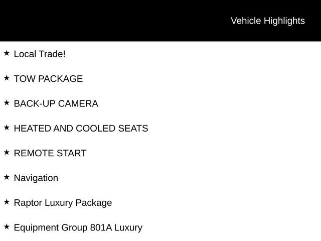 Clean Auto Check! Recent Arrival! Local Trade!, TOW PACKAGE, BACK-UP CAMERA, HEATED AND COOLED SEATS, REMOTE START, F-150 SVT Raptor, 4D SuperCrew, 6.2L V8 EFI 16V, 6-Speed Automatic Electronic, 4WD, Ruby Red Metallic Tinted Clearcoat, Black w/Brick Red Accent w/Unique Black Leather Insert 40/Console/40 Seats, 10-Way Power Driver & Passenger Seats, Dual Electronic Automatic Temperature Control, Electronic Locking w/4.10 Axle Ratio, Equipment Group 801A Luxury, Front Bucket Seats, GVWR: 7,450 lbs Payload Package, Heated PowerFold Side Mirrors w/Memory, High-Intensity Discharge Headlamps, Memory System, Navigation, Power Adjustable Pedals w/Memory, Power Tilt/Telescoping Steering Wheel, Radio: Sony Single-CD w/HD, Raptor Luxury Package, Rear-View Camera, Trailer Brake Controller, Universal Garage Door Opener.