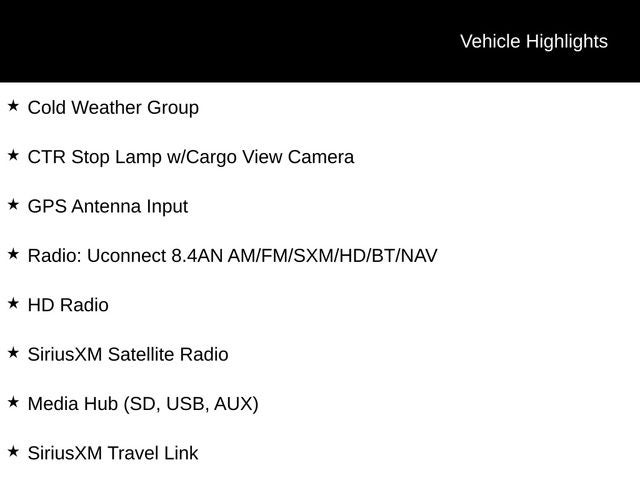 - Radio: Uconnect 8.4AN AM/FM/SXM/HD/BT/NAV