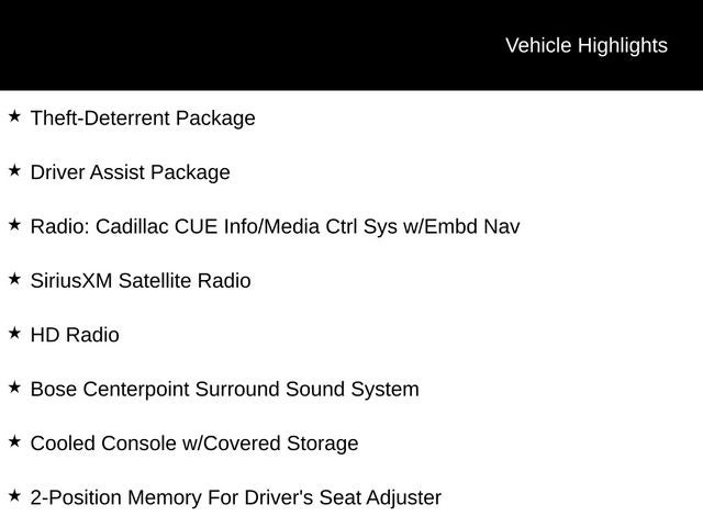 - Radio: Cadillac CUE Info/Media Ctrl Sys w/Embd Nav