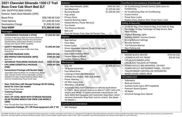 Clean Auto Check! Recent Arrival! Local Trade!, HEATED LEATHER SEATING, TOW PACKAGE, BACK-UP CAMERA, HEATED SEATS, Silverado 1500 LT Trail Boss, 4D Crew Cab, EcoTec3 6.2L V8, 10-Speed Automatic, 4WD, Satin Steel Metallic, Jet Black w/Leather-Appointed Front Seat Trim, 10-Way Power Driver Seat w/Lumbar, 12-Volt Rear Auxiliary Power Outlet, 170 Amp Alternator, 2 USB Ports (First Row), 4.2 Diagonal Color Display Driver Info Center, 4G LTE Wi-Fi Hot Spot Capable, 6-Speaker Audio System, Advanced Trailering Package, Advanced Trailering System, All-Weather Floor Liner (LPO) (AAK), AM/FM radio: SiriusXM, Auto-Locking Rear Differential, Auxiliary External Transmission Oil Cooler, Bluetooth® For Phone, Chevrolet Connected Access Capable, Cloth Rear Seat w/Storage Package, Convenience Package w/Buckets Seats, Dual Exhaust w/Polished Outlets, Dual-Zone Automatic Climate Control, Electric Rear-Window Defogger, Electronic Cruise Control, EZ Lift Power Lock & Release Tailgate, Floor Mounted Center Console, Front Bucket Seats, Front LED Fog Lamps, Heated Steering Wheel, Heavy-Duty Air Filter, High Gloss Black Grille, High Gloss Black Mirror Caps, Hill Descent Control, Hitch Guidance, Hitch Guidance w/Hitch View, Integrated Trailer Brake Controller, Leather Package, Leather Wrapped Steering Wheel, Leather-Appointed Front Seat Trim, LED Cargo Area Lighting, LED Reflector Headlamps, Manual Tilt/Telescoping Steering Column, OnStar & Chevrolet Connected Services Capable, Performance Red Recovery Hooks, Preferred Equipment Group 2LT, Premium audio system: Chevrolet Infotainment 3, Radio: Chevrolet Infotainment 3 System, Rear Dual USB Charging-Only Ports, Rear Vision Camera, SiriusXM Radio, Standard Tailgate, Steering Wheel Audio Controls, Suspension Package, Theft Deterrent System (Unauthorized Entry), Trailering Package, Up-Level Rear Seat w/Storage Package.