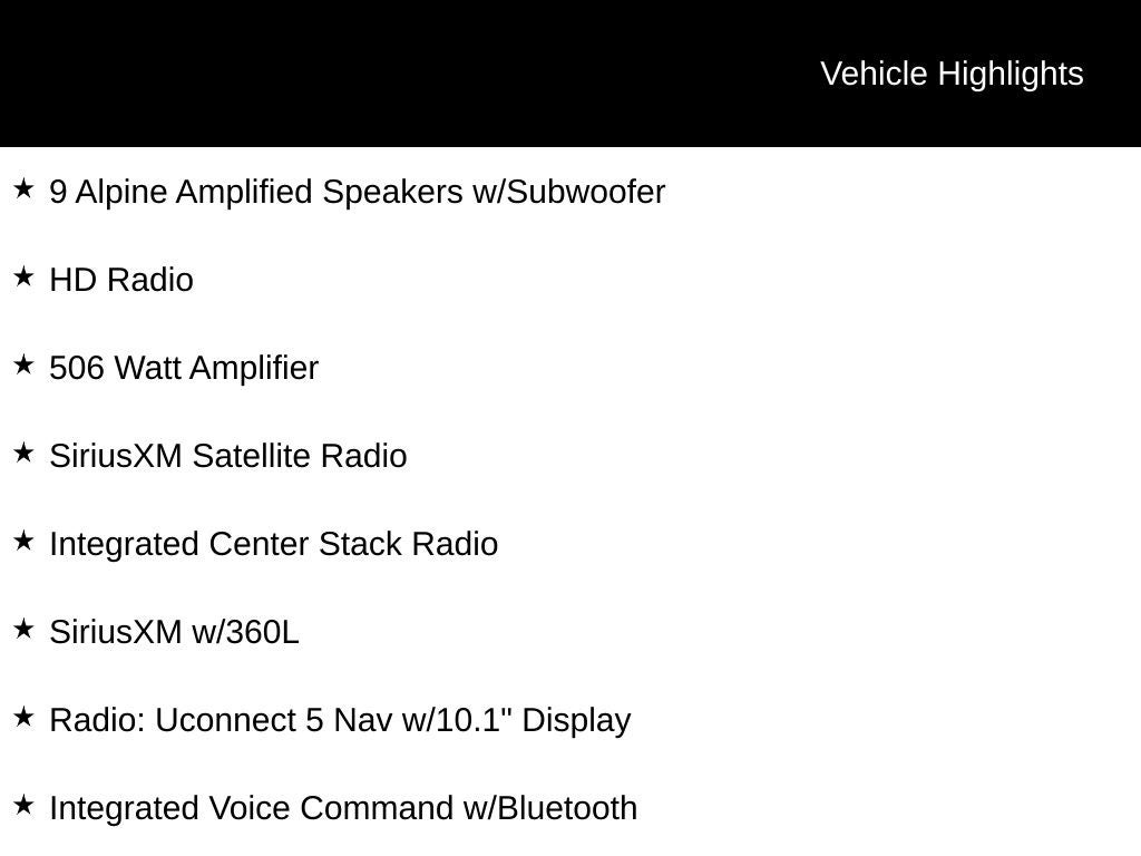 - Radio: Uconnect 5 Nav w/10.1" Display