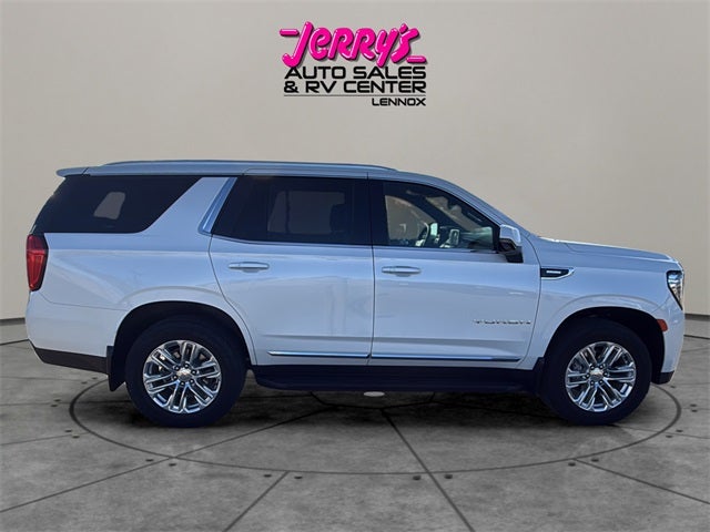 This is a Jerry’s Certified vehicle which offers true peace of mind. Each one includes a 30-day / 1,000-mile limited warranty, a comprehensive 115-point inspection, a free AutoCheck history report, and professional detailing and reconditioning. These vehicles are inspected, protected, and guaranteed, making them a standout choice for buyers seeking reliability and value. Yukon SLT, 4D Sport Utility, 3.0L I6, 10-Speed Automatic with Overdrive, 4WD, White Frost Tricoat, Jet Black w/Perforated Leather-Appointed Seating, 12-Way Power Seat Adjusters, 2 Presets For Outside Rearview Mirrors, 2 Presets For Power Driver Seat, 3.23 Rear Axle Ratio, 3rd Row 60/40 Power-Folding Split-Bench Seat, Adaptive Cruise Control, AM/FM radio: SiriusXM with 360L, AM/FM Stereo, Apple CarPlay/Android Auto, Automatic Emergency Braking, Automatic temperature control, Bose 9-Speaker Stereo Audio System Feature, Bright Chrome Bodyside Moldings, Bright Front & Rear Door Sill Plates, Bumpers: body-color, Chrome Door Handles w/Body-Color Strip, Electronic Stability Control, Enhanced Automatic Emergency Braking, Floor Console, Following Distance Indicator, Forward Collision Alert, Front & Rear Park Assist, Front Bucket Seats, Front dual zone A/C, Front fog lights, Front Pedestrian Braking, Fully automatic headlights, Garage door transmitter, Hands-Free Power Programmable Rear Liftgate, HD Surround Vision, Heated 2nd Row Outboard Position Seats, Heated front seats, Heated Steering Wheel, Hitch View, Illuminated entry, Inside Rear-View Auto-Dimming Mirror, Integrated Trailer Brake Controller, IntelliBeam Automatic High Beam On/Off, Lane Change Alert w/Side Blind Zone Alert, Lane Keep Assist w/Lane Departure Warning, Max Trailering Package, Memory seat, Navigation System, Outside Heated Power-Adjustable Mirrors, Overhead console, Power driver seat, Power Release 2nd Row 60/40 Split-Folding Bench Seat, Power Tilt & Telescopic Steering Column, Preferred Equipment Group 4SA, Premium Smooth Ride Suspension, Rain sensing wipers, Rear air conditioning, Rear Cross Traffic Alert, Rear Pedestrian Alert, Rear window defroster, Rear window wiper, Safety Alert Seat, SiriusXM w/360L, SLT Luxury Package, Smart Trailer Integration Indicator, Spoiler, Universal Home Remote, Variably intermittent wipers, Ventilated front seats, Wheels: 20 x 9 6-Spoke Polished Aluminum, Wireless Charging. Odometer is 11126 miles below market average! 20/26 City/Highway MPG